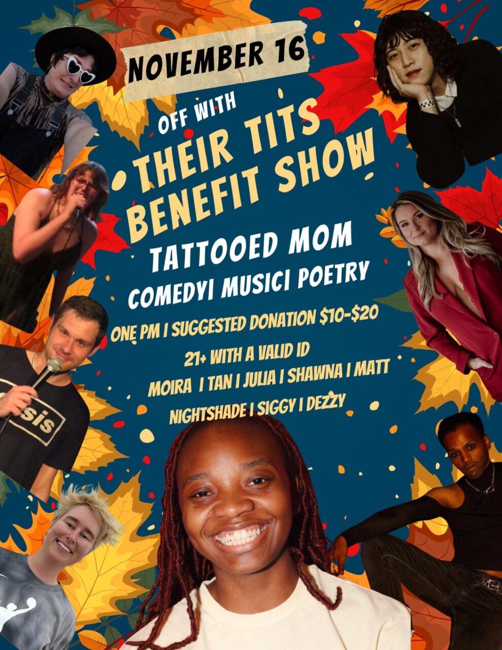 Your favorite comedian’s favorite comedian is getting top surgery! Join us for this free variety show featuring comedians, poets, and musicians. Suggested donation for support after the surgery is $10-$20.