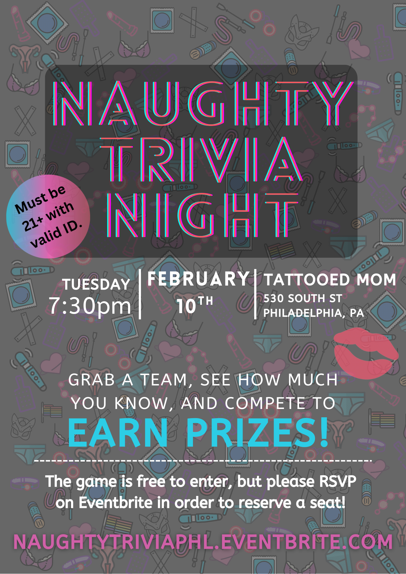 Think you already know everything there is to know with your naughty knowledge? Come out to Naughty Trivia Night to test that!! This trivia night will test your knowledge on things you know, things you don’t, and things you didn’t even know you don’t know. Teams will be led through four rounds of general questions
