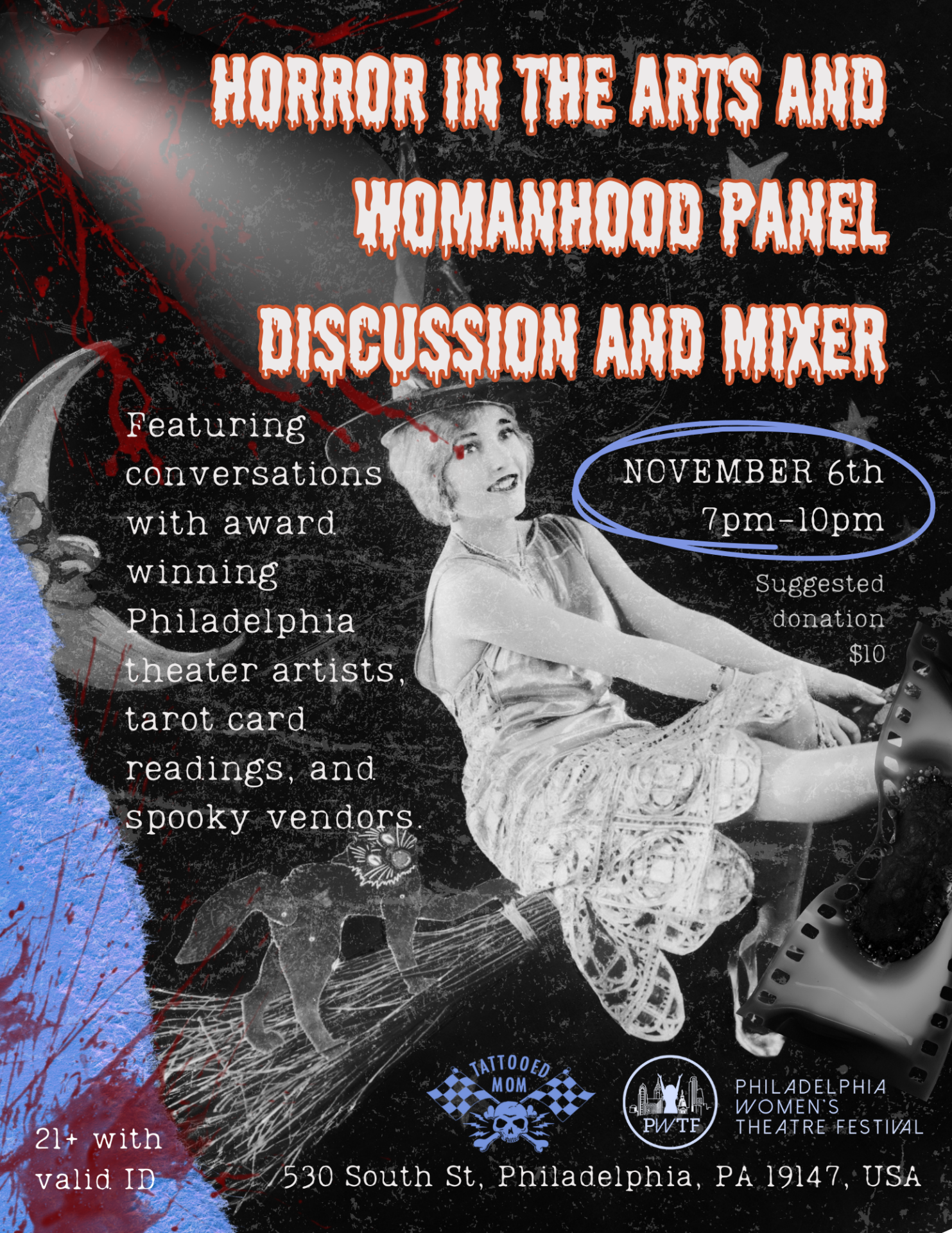 Because it’s ALWAYS spooky season for women in America, join us for a special panel discussion on horror in theatre & film and being a woman today. This panel will feature Philly locals Alyssandra Docherty (award winning Philadelphia freelance lighting designer) Christina Acevedo (founder of Girls Like Horror, an inclusive film club shining light on horror films made by women AND scary/haunting/grotesque movies with strong, complex, multidimensional female protagonists), and Priyanka Shetty (award winning actor, playwright, and director based in Philadelphia).
