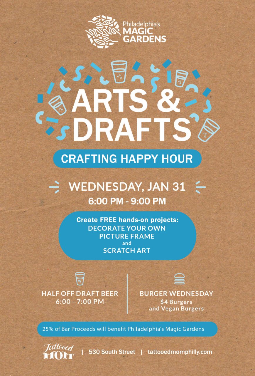 Join our friends from Philadelphia’s Magic Gardens for a special Arts & Drafts crafting happy hour. Make your own scratch art masterpiece and picture frame to show it off in with all the crafting goodies you’ll need supplied. We’ll be donating a percentage of all food and drink sales to help support the good work of this neighborhood gem & cultural anchor.