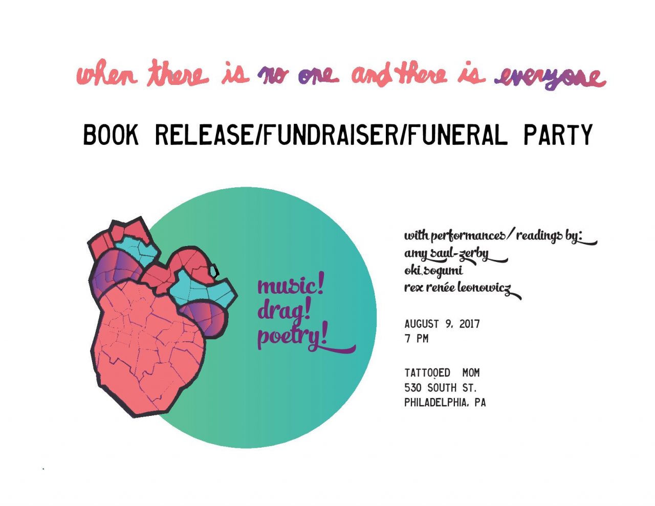 Celebrate the release of Rex Renee Leonowitch‘s new book of poetry and illustrations, When There Is No One And There Is Everyone, with an evening of poetry, drag, music & art.