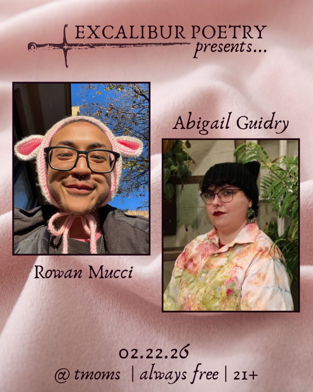Excalibur happens in the same time and place as Scribes on South, the last Sunday of each month on the second floor of Tattooed Mom.
