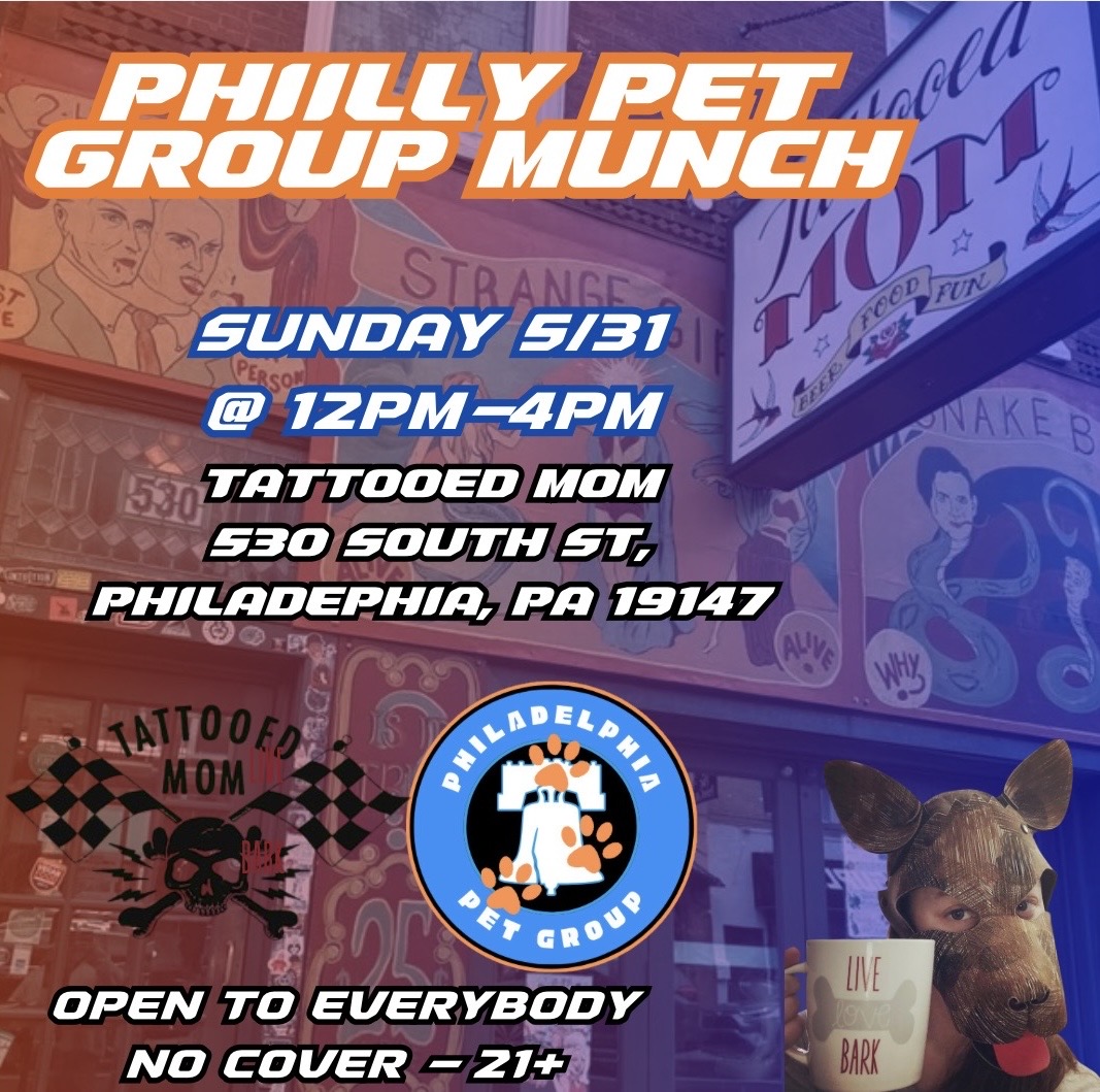 Join us for a relaxed Pet Play Munch with the Philly Pet Group! We’ll be gathering in the upstairs back room at Tattooed Mom on Sunday, May 31 from 12–4 PM for an afternoon of community, conversation, and connection.