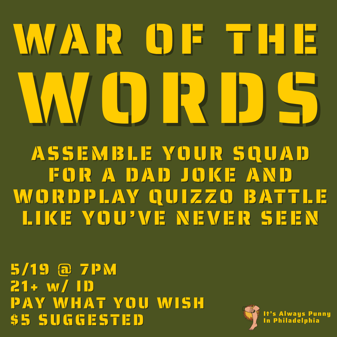 Find out more »WAR OF THE WORDS: Dad Joke and Wordplay Quizzo Battle