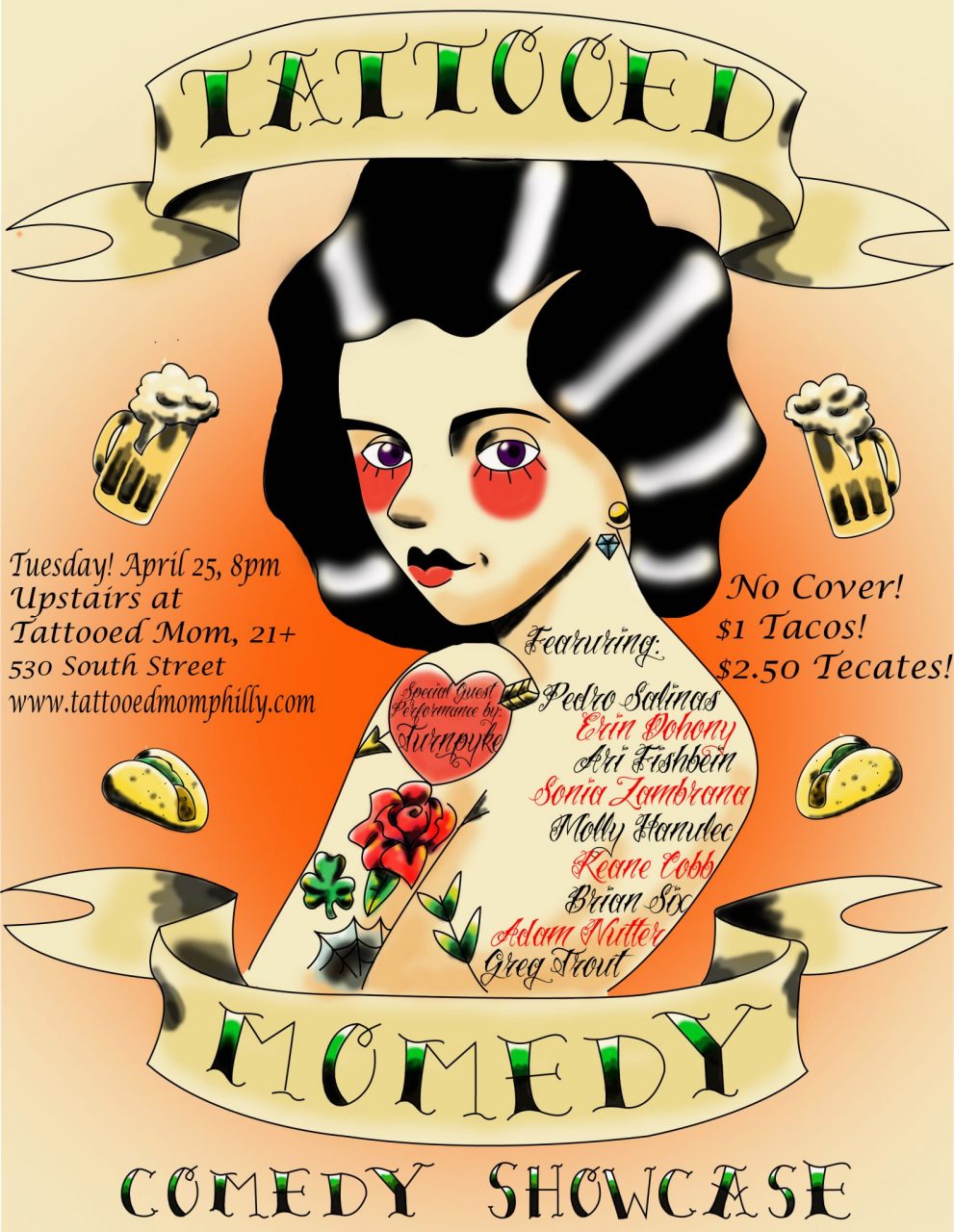 Tattooed Momedy is our FREE monthly comedy showcase featuring hilarious comedy performers from Philadelphia and across the U.S., including stand-up, burlesque, sketch and whatever else!