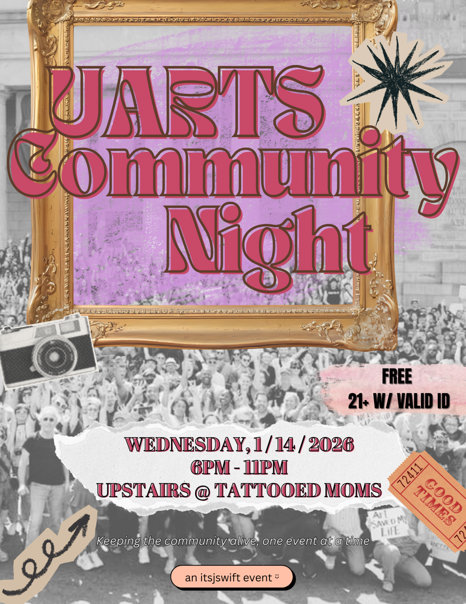 • Accessibility at TMoms | Due to the construction of our historical building, Tattooed Mom is only partially accessible. Our event space is on the second floor, which is only accessible via a flight of stairs (20 steps, 3 feet wide, railing on the left side only). For more information, please visit our Accessibility page.